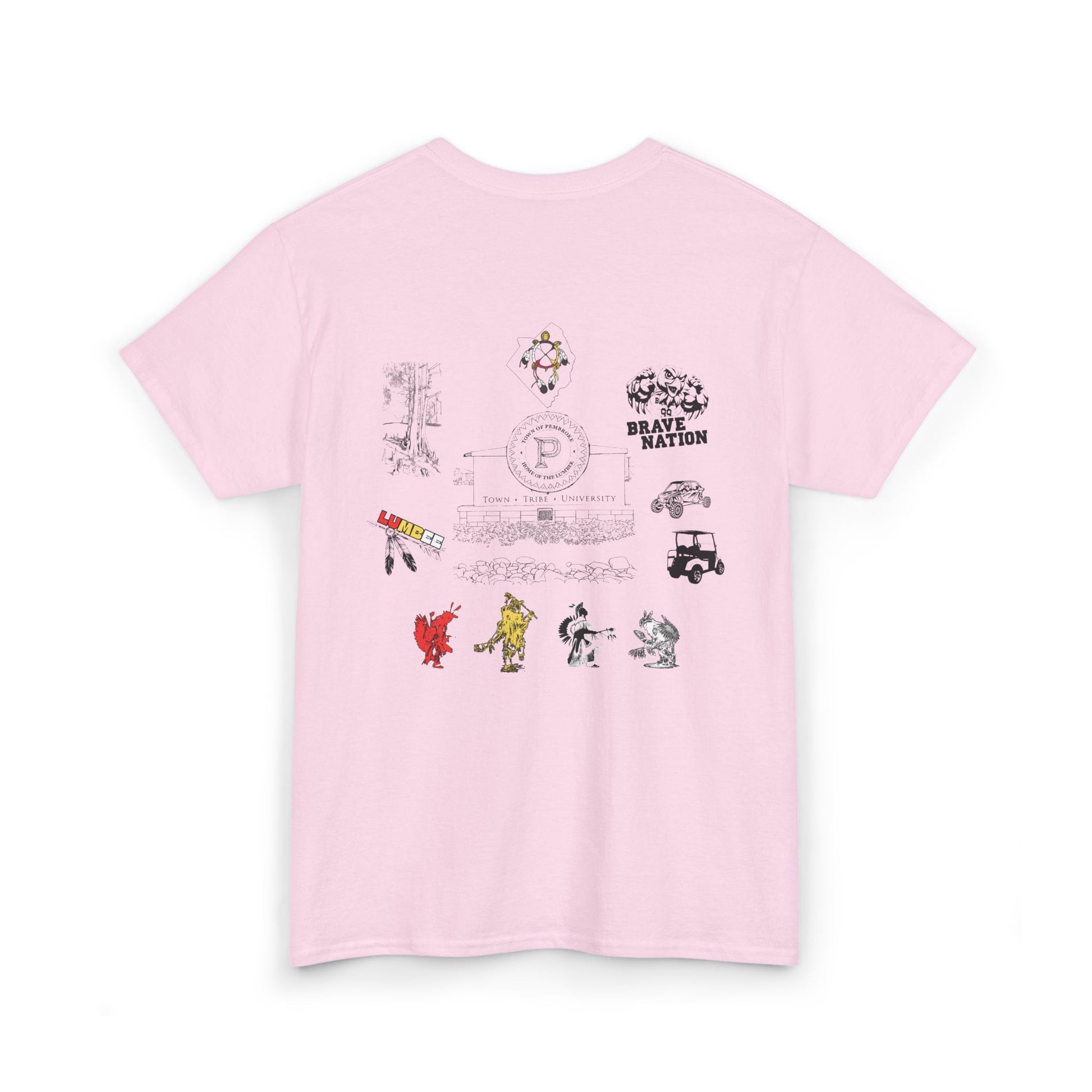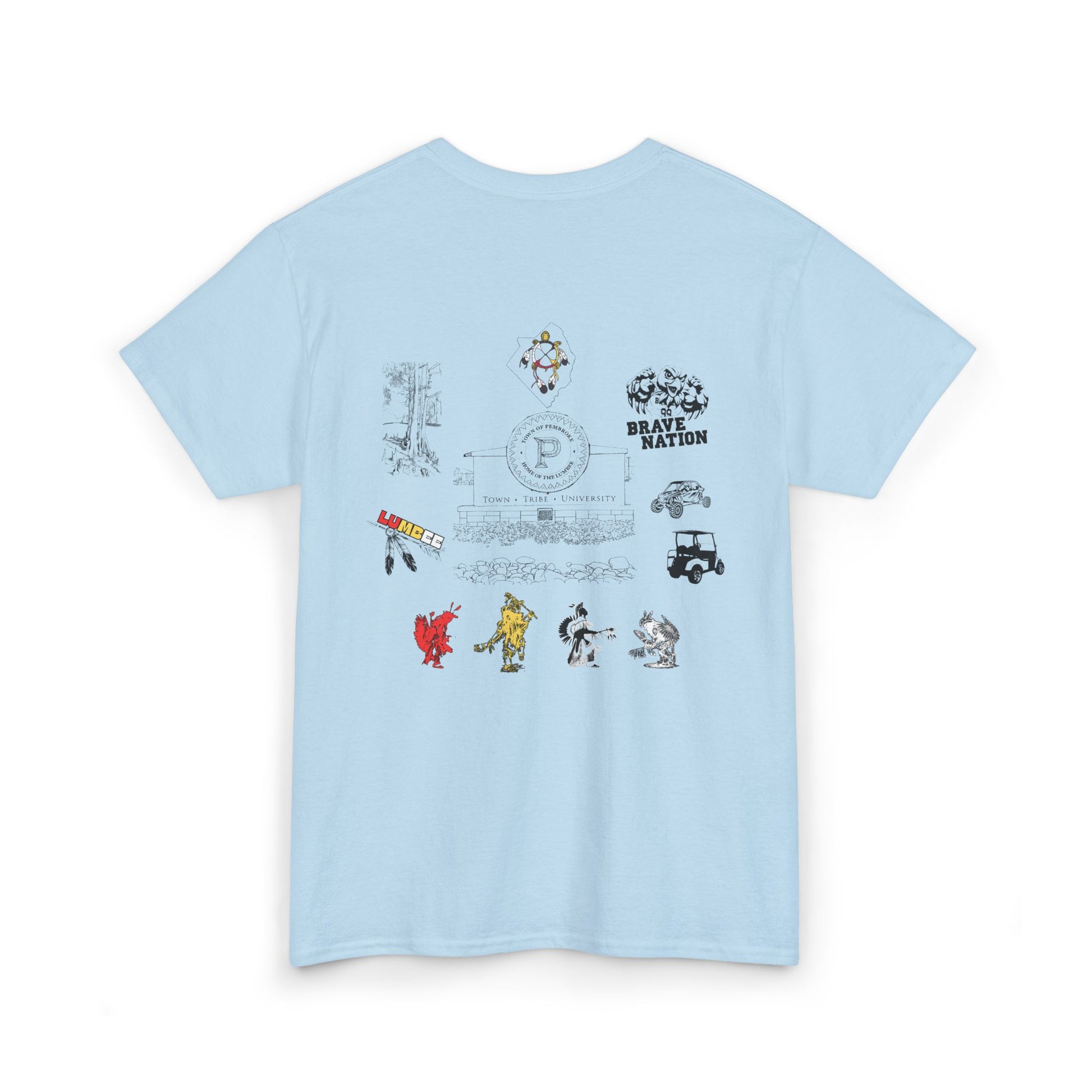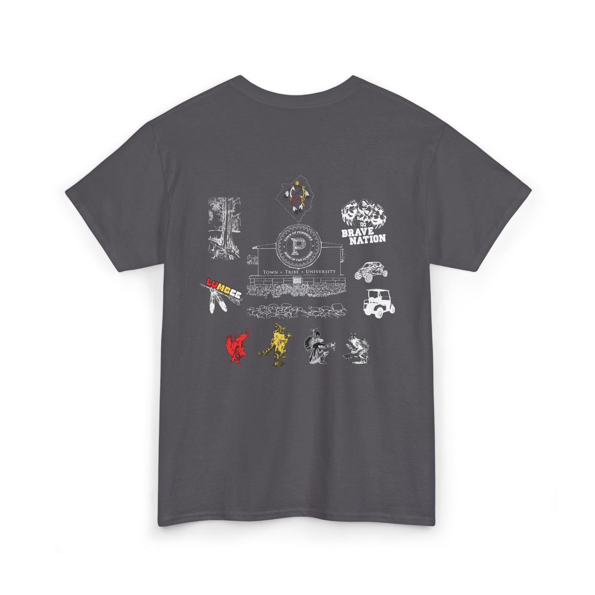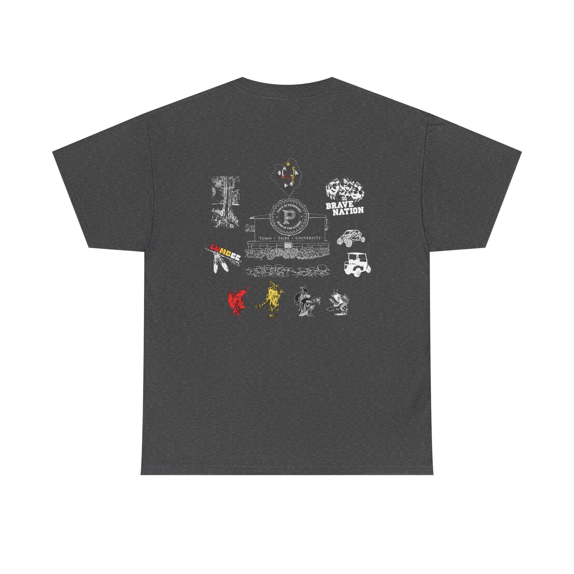 The 910 Lifestyle Tee is a small embodiment of what it means to be Lumbee. Annual Pow Wows, the Lumber River, Lumbee Homecoming, the University, and in the center, Pembroke, being the seat of the Tribe. I thought of some of the main things that the Lumbee people love and put them all into one design.