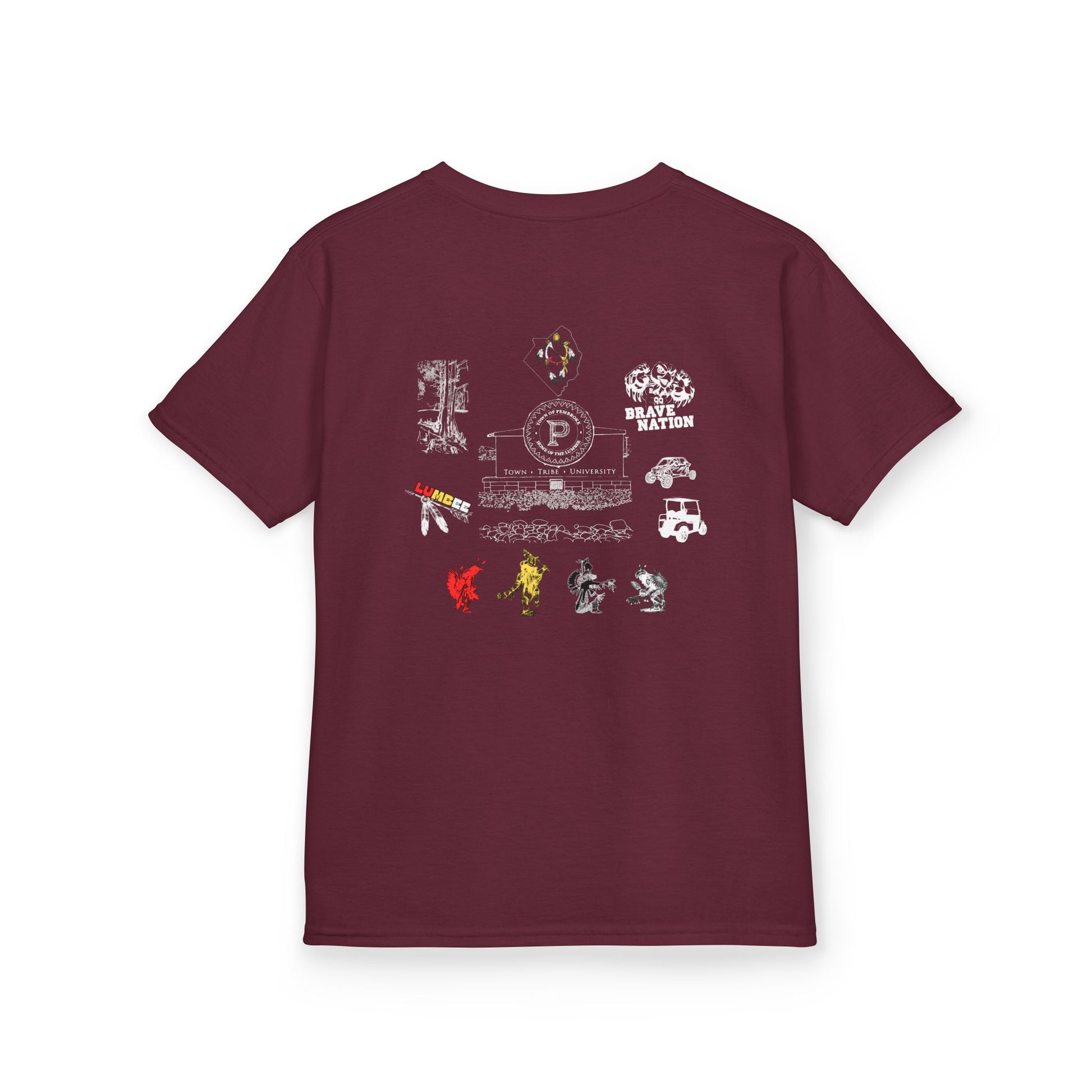 The 910 Lifestyle Tee is a small embodiment of what it means to be Lumbee. Annual Pow Wows, the Lumber River, Lumbee Homecoming, the University, and in the center, Pembroke, being the seat of the Tribe. I thought of some of the main things that the Lumbee people love and put them all into one design.