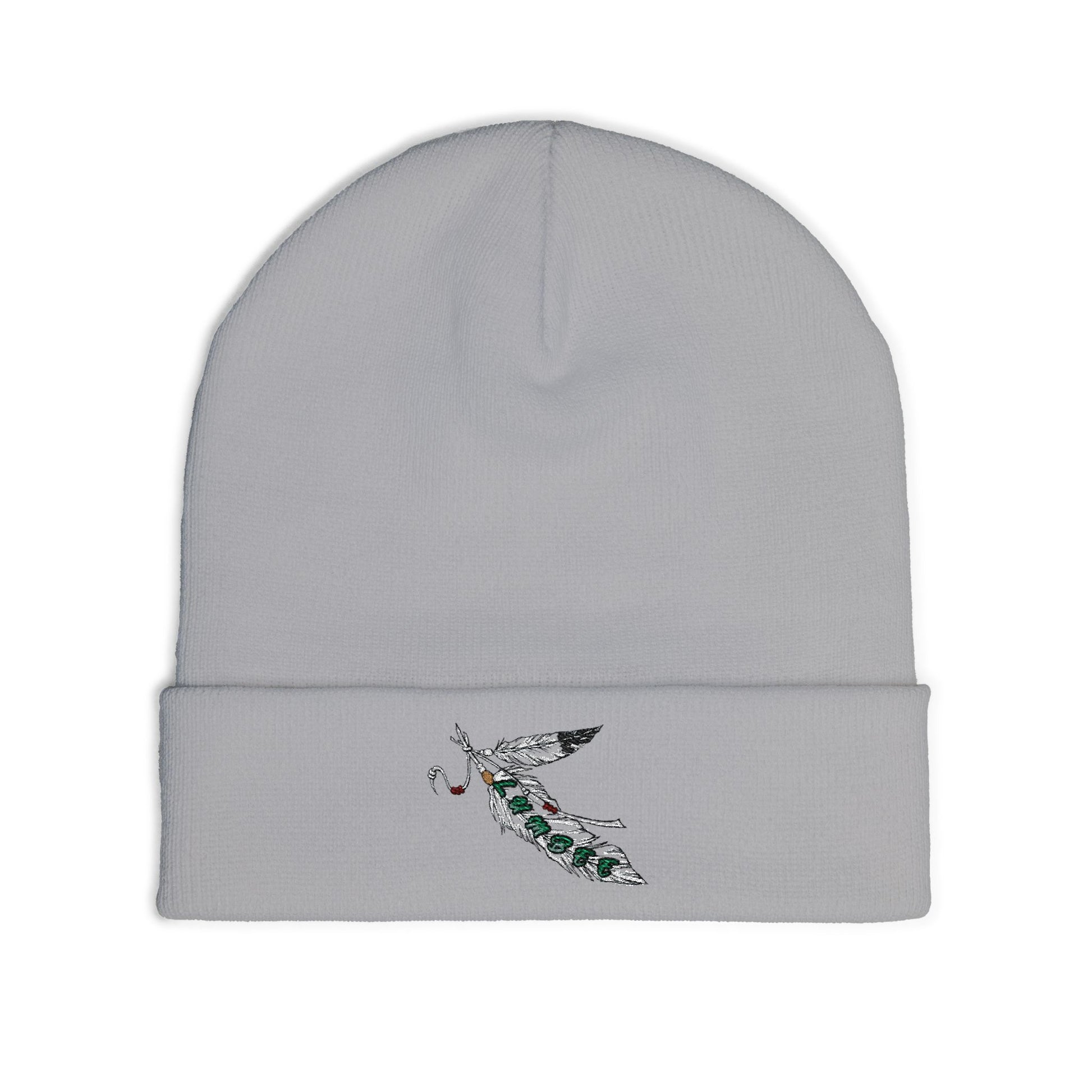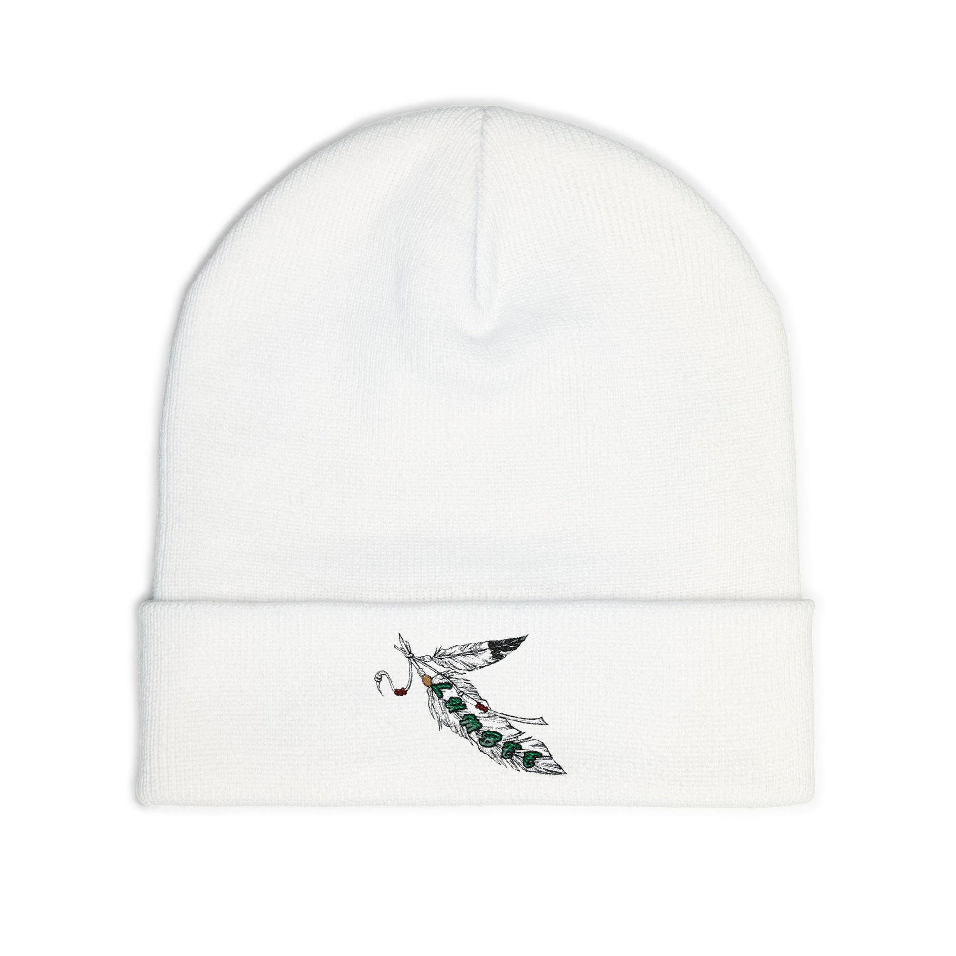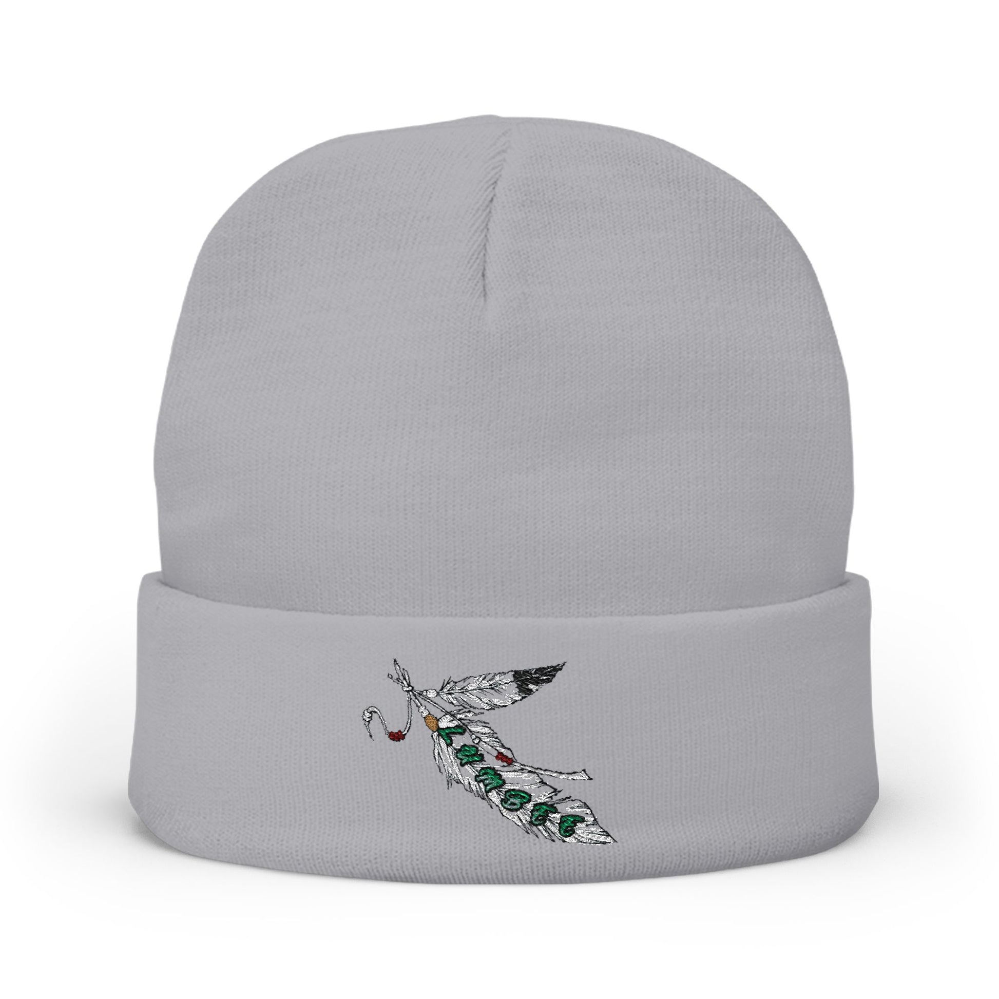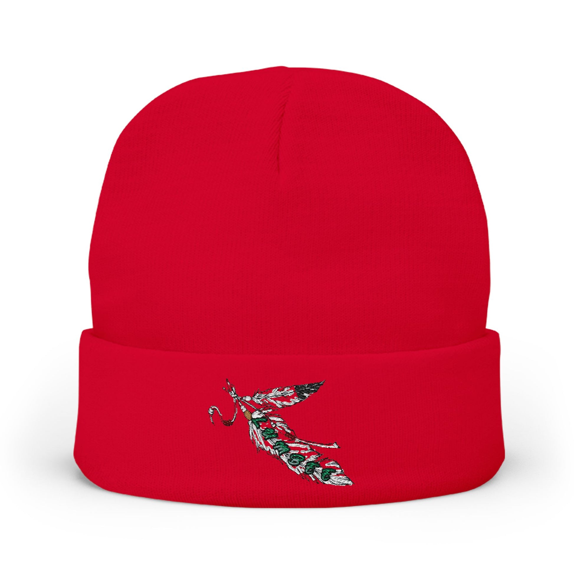 Embrace your Lumbee Pride with our Lumbee Feather Knit Beanie. Its breathable construction ensures comfort and allows for a snug fit, perfect for chilly days. Great for the holidays and everyday use during the cold months.
