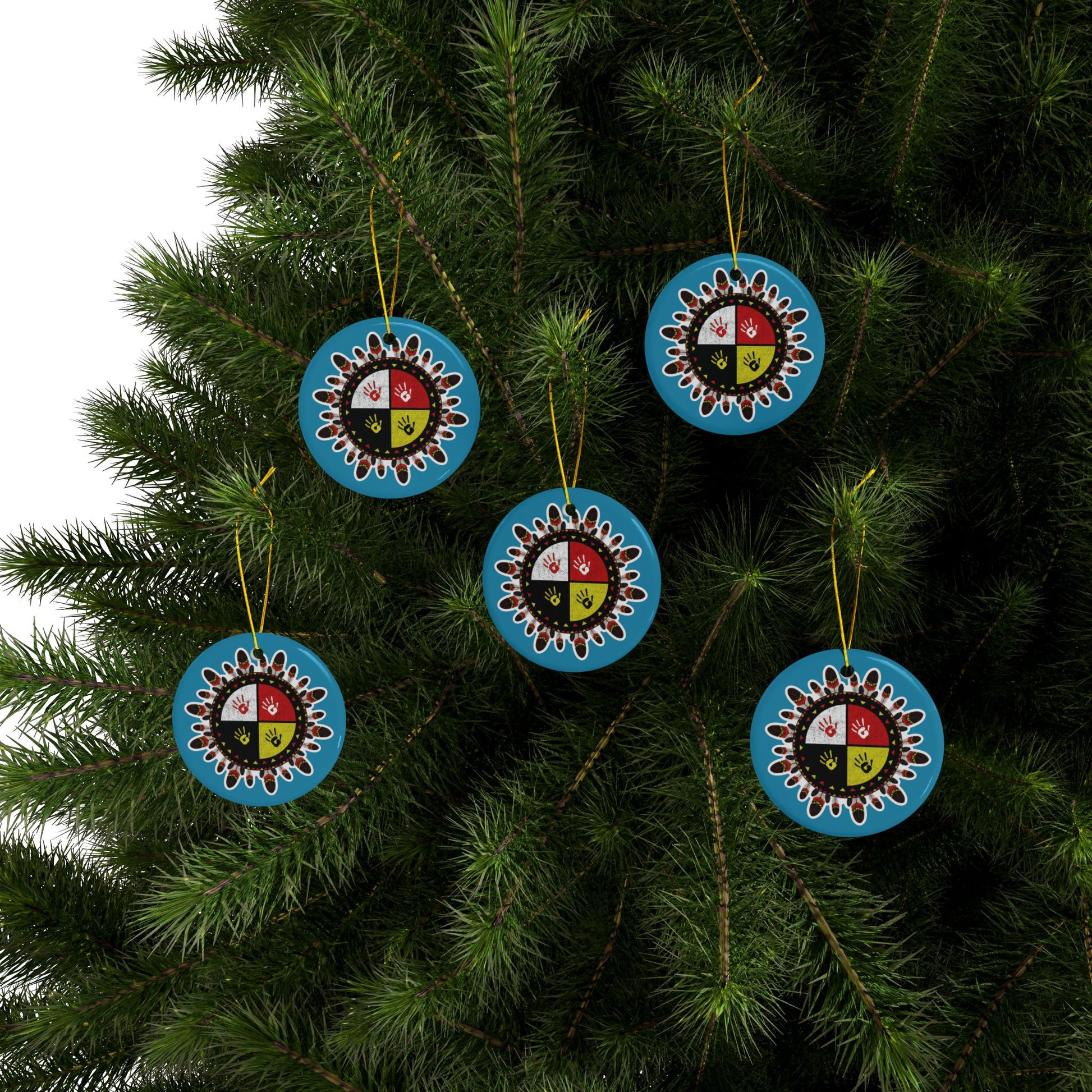 Medicine Wheel Ceramic Ornament (Two-Sided) — Turquoise